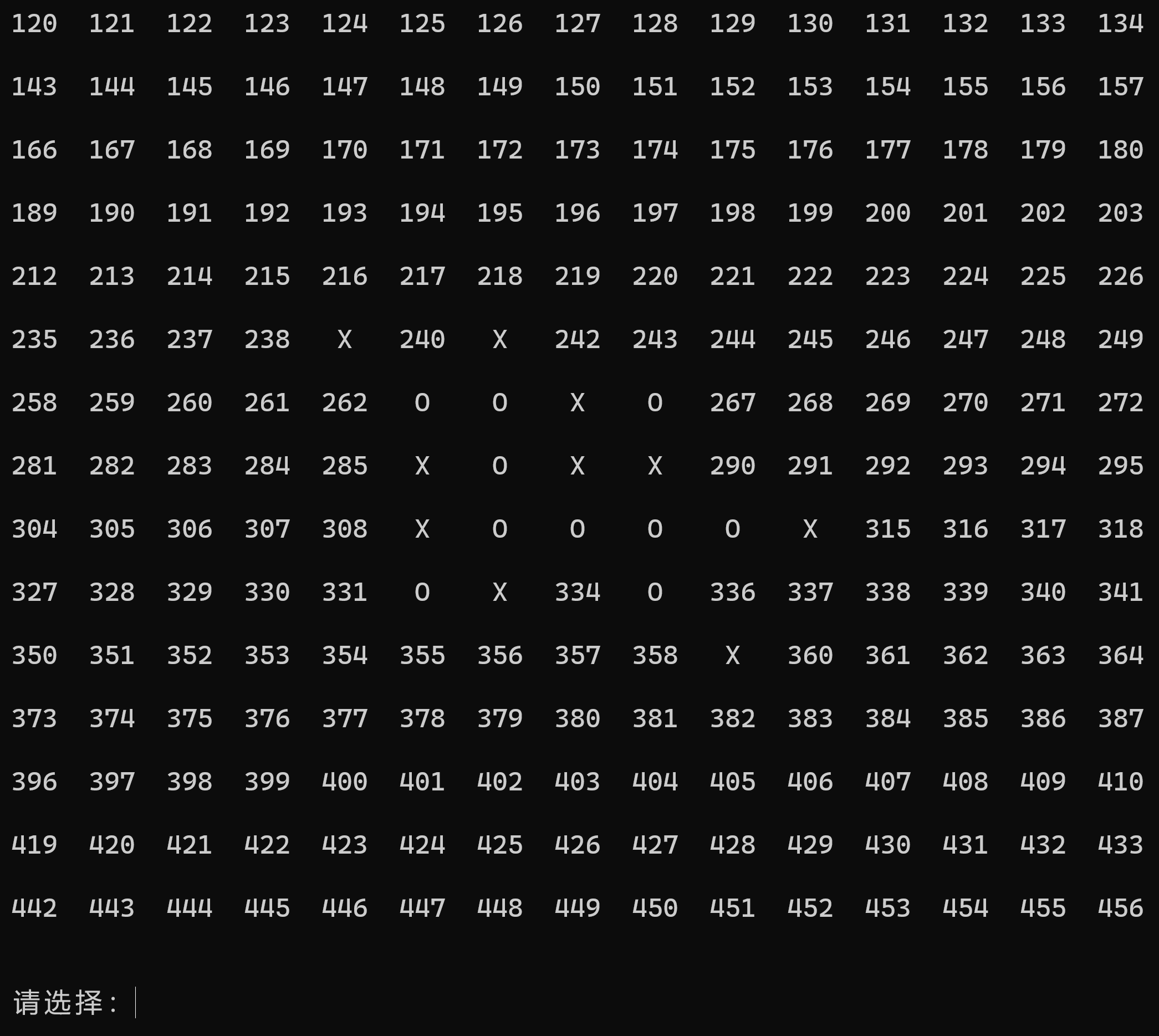 玩家棋子以 O 表示,苏轼棋子以 X 表示。
