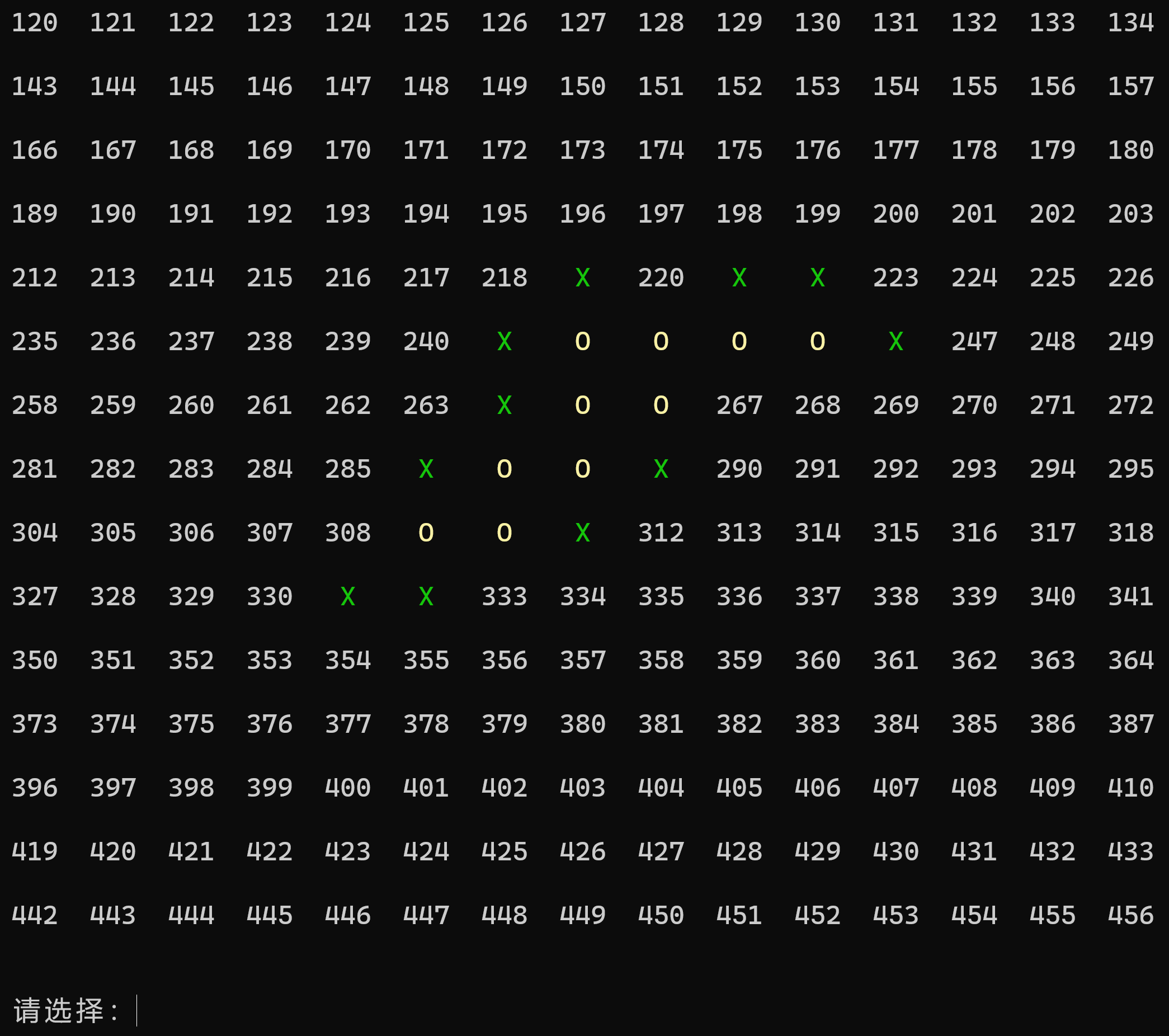 玩家棋子以 O 表示,苏轼棋子以 X 表示。